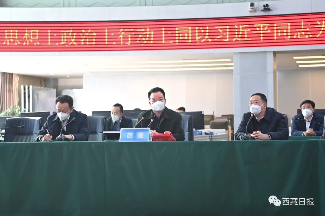 1月18日下午,自治区党委书记王君正以“四不两直”方式对全区维稳值班备勤和安全生产工作进行督导检查。这是王君正来到自治区维稳指挥中心,视频连线各地市维稳指挥部听取工作情况汇报。记者 旦增西旦 摄