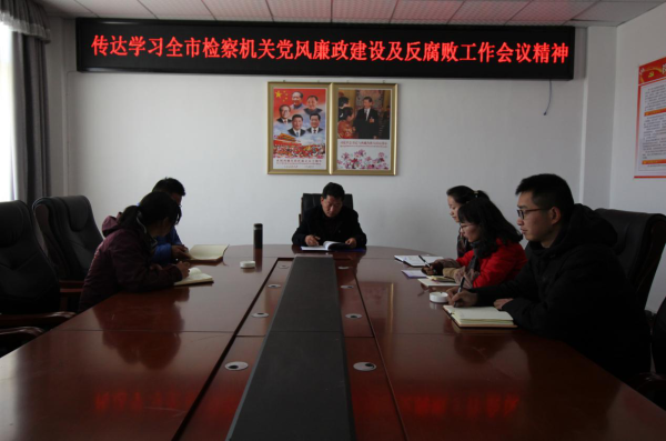 会上首先由达娃琼达同志传达了全市检察机关党风廉政建设与反腐败工作会议精神,会议指出:一、检察机关认真贯彻中央、区党委、市委、高检院和区检院关于全面从严治党的决策部署,把党风廉政建设和反腐败工作摆在更加突出的位置,坚持以党的政治建设为统领,认真落实“两个责任”,持之以恒作风建设,扎实规范司法行为。二、紧紧围绕坚持党对检察工作的绝对领导,紧紧围绕以习近平同志为核心的党中央权威和集中统一领导,认真履行管党治党、管检治检主体责任和监督责任,深入推进自身反腐败工作。三、锲而不舍整治“四风”突出问题,深入贯彻中央八项规定及其实施细则,在常和长、严和实、深和细上下功夫,管出习惯,抓出成效。