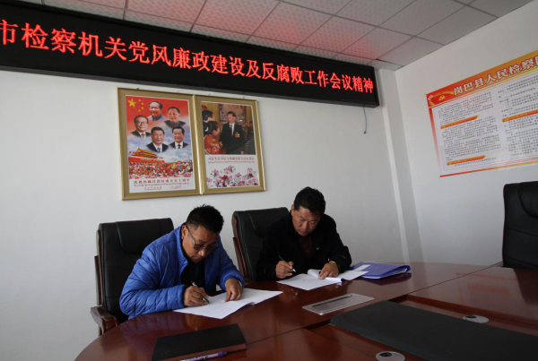 最后,院领导与各科室负责人分别签订了《365bet官方博客_bt365如何_365足彩推荐人民检察院党风廉政建设责任书》,党支部与全体党员干警签订了《365bet官方博客_bt365如何_365足彩推荐人民检察院工作人员廉洁从简承诺书》。达娃琼达同志再次强调要坚定政治方向,切实抓好“两个责任”的落实,坚持驰而不息纠“四风”,锲而不舍落实中央八项规定精神,进一步抓好我院纪律作风建设。