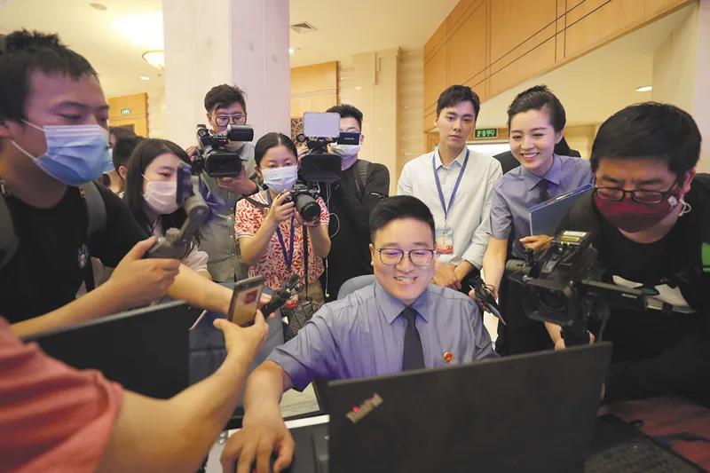 2020年5月30日,在主题为“同舟共济,检护明天”的“网上检察开放日”活动上,检察干警正在介绍12309未成年人司法保护专区。(摄影 / 方圆记者 张哲)