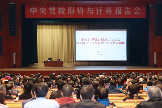 中央党校(国家行政学院)举行报告会 张军作专题报告时强调