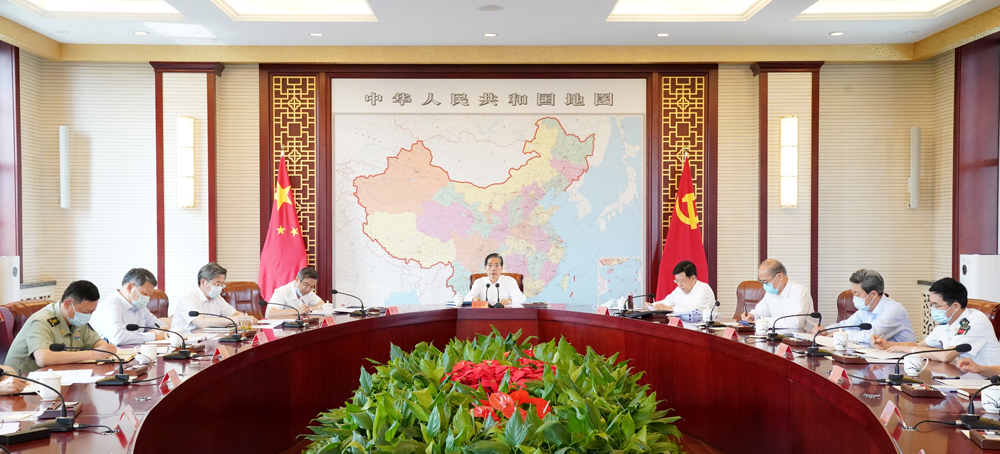 7月2日,中共中央政治局委员、中央政法委书记郭声琨主持召开中央政法委员会全体会议,传达学习贯彻习近平总书记在庆祝中国共产党成立100周年大会上的重要讲话精神。郝帆摄