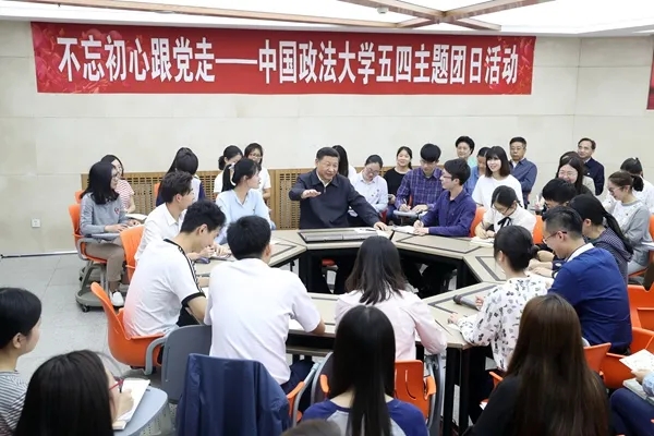 2017年5月3日,习近平在中国政法大学学生活动中心参加民商经济法学院1502班团支部开展的“不忘初心跟党走”主题团日活动。新华社记者 王晔 摄