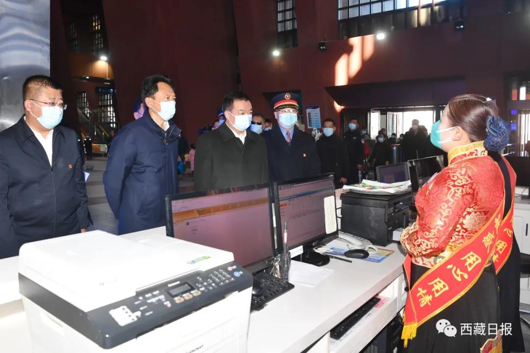 王君正来到拉萨火车站安检口、候车大厅、出站口前广场,详细了解疫情防控措施,看望慰问铁路职工、执勤民警和疫情防控人员。他指出,岁末年关,群众探亲度假、农民工返乡、学生放假,各类人员流动大幅度增加,冬季各类传染性疾病高发,疫情防控形势依然复杂严峻,越到关键时刻,越不能麻痹大意,越要统一思想、凝心聚力,始终绷紧疫情防控这根弦,坚决落实好“外防输入、内防反弹”各项措施,毫不松懈做好疫情防控工作。