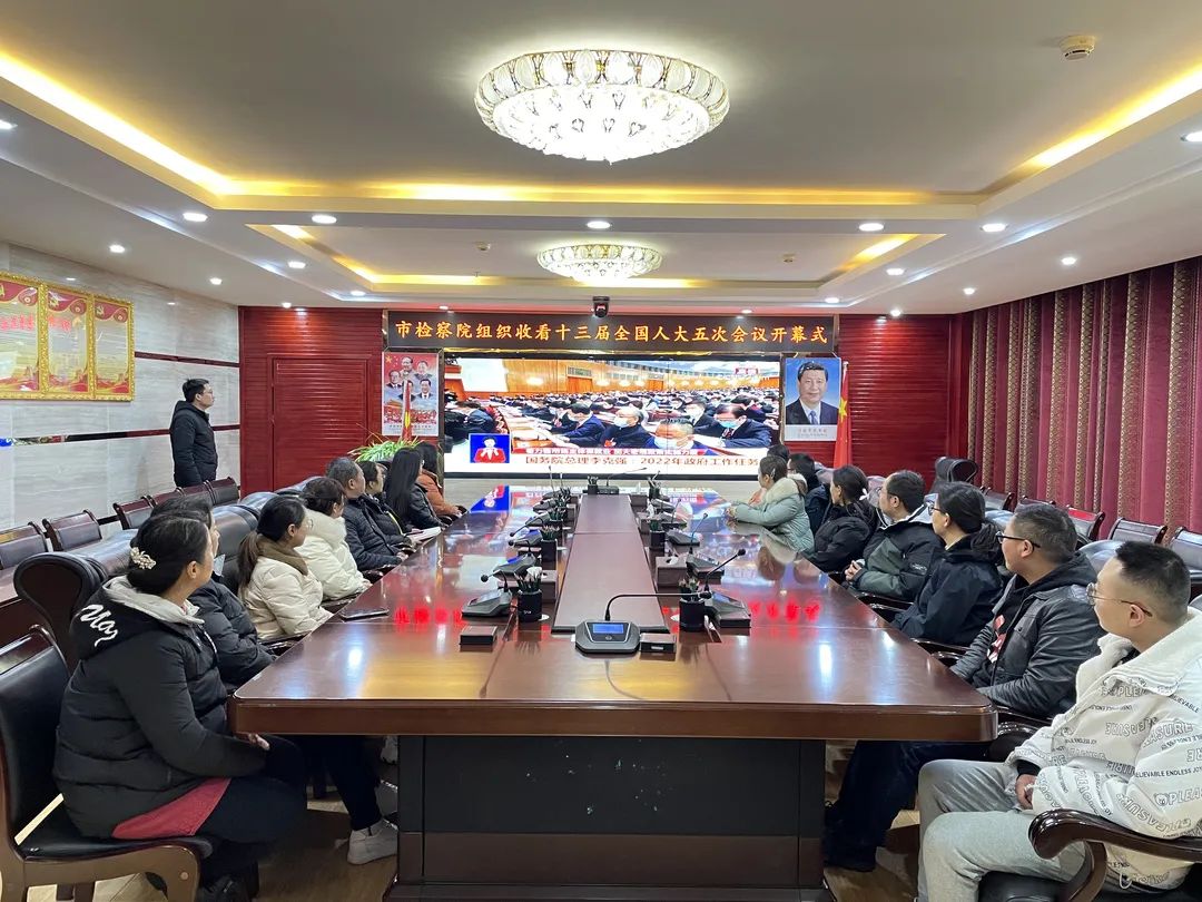 2022年3月5日上午,十三届全国人大五次会议在北京隆重开幕,市检察院组织全体检察干警以视频会议形式集中收看开幕会实况直播。