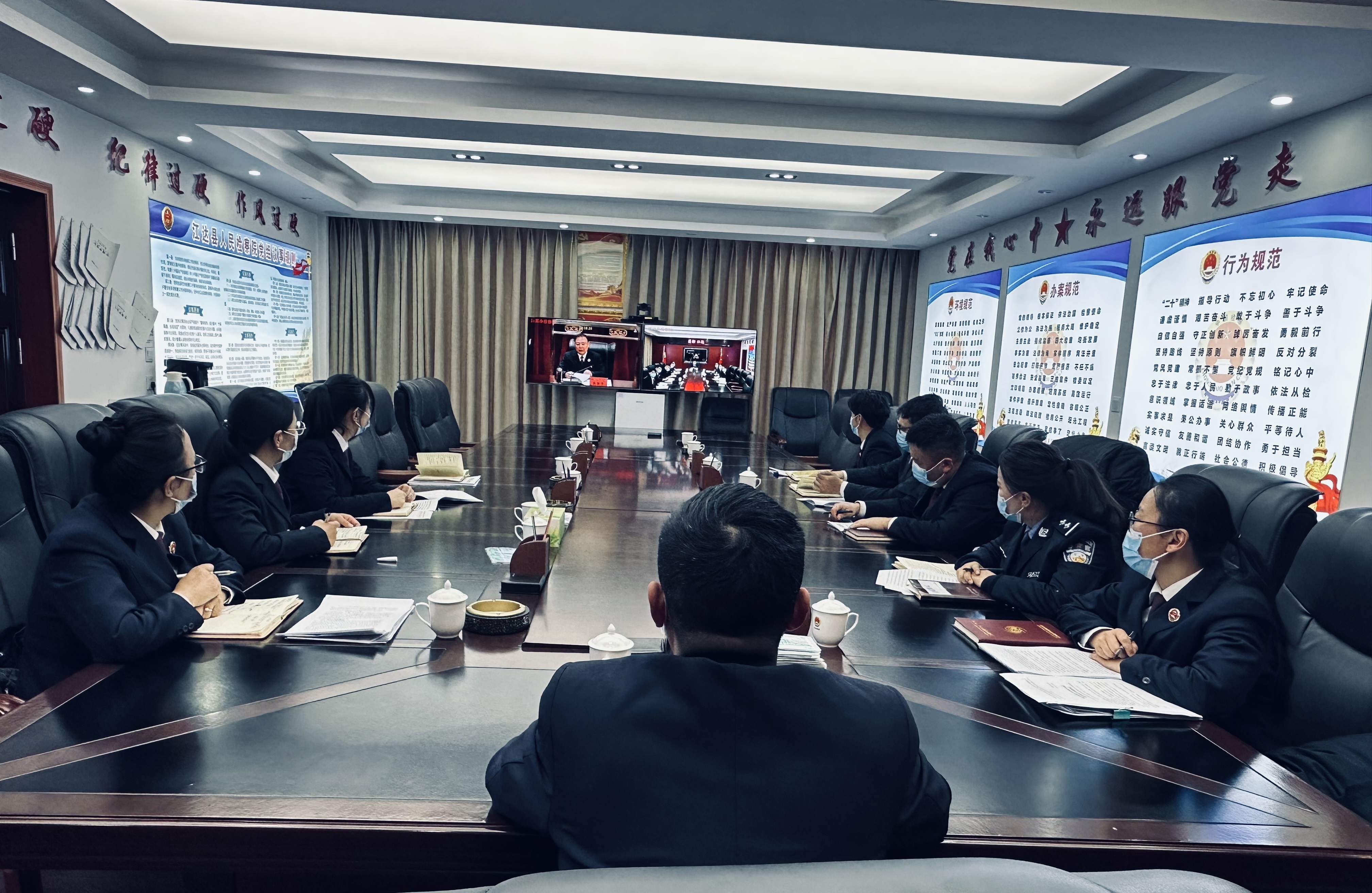 会议以视频连线开至各基层检察院,市检察院领导班子成员、各县(区)院检察长及全市检察干警分别在主会场、各分会场参加会议。