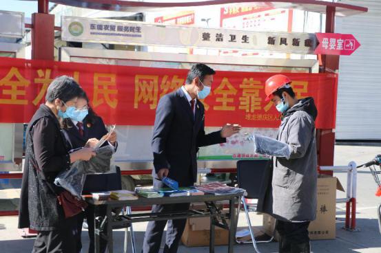 为深入学习贯彻习近平总书记对网络安全的重要讲话和重要指示精神,增强广大人民群众的网络安全意识,提升网络安全防护能力。根据《2021年国家网络安全宣传周堆龙德庆区实施方案》的通知要求,我院于2021年10月14日上午在东嘎农贸批发市场内开展“网络安全为人民,网络安全靠人民”为主题的网络安全法制宣传活动。