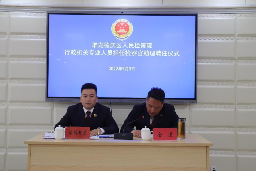为深入贯彻落实习近平法治思想和新时代党的治藏方略,贯彻落实最高人民检察院关于聘请行政机关专业人员兼任检察官助理的相关文件精神,5月9日,堆龙德庆区人民检察院举行首批特邀检察官助理聘任仪式,聘请来自生态环境、食药安全、家庭教育等各领域的3名专业人员担任堆龙德庆区人民检察院首批特邀检察官助理。拉萨市人民检察院党组副书记、副检察长金美出席仪式并致辞,堆龙德庆区人民检察院党组书记、检察长索朗旺庆主持,院党组成员,全体干警及聘用制书记员参加了会议。