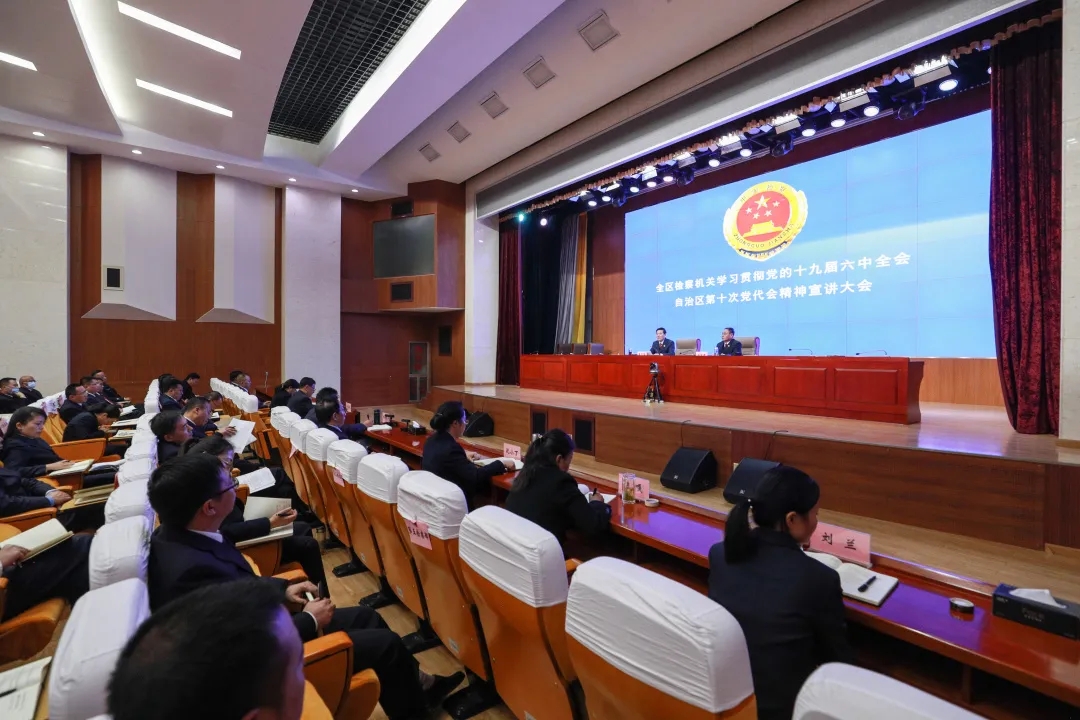 11月30日,全区检察机关学习贯彻党的十九届六中全会精神宣讲大会召开,深入学习领会党的十九届六中全会和自治区第十次党代会精神。自治区检察院党组书记、检察长夏克勤作宣讲报告。