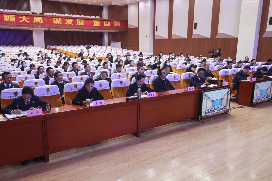 会议以视频形式开至全区三级检察院。区检院党组副书记、常务副检察长汪留国主持会议,区检院在家院领导及全体干警在主会场参加会议,各市分院、基层院全体干警在分会场参加会议。