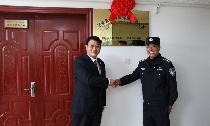 为深入贯彻落实习近平法治思想,加强检警协作配合,提升案件办理质效,共同打击违法犯罪,维护社会大局稳定,保障人民安居乐业。根据《最高人民检察院 公安部关于健全完善侦查监督与协作配合机制的意见》和《西藏自治区人民检察院 西藏自治区公安厅关于建立健全检警协作配合机制的意见》,6月29日上午,那曲市人民检察院、那曲市公安局“侦查监督与协作配合办公室”正式挂牌成立。