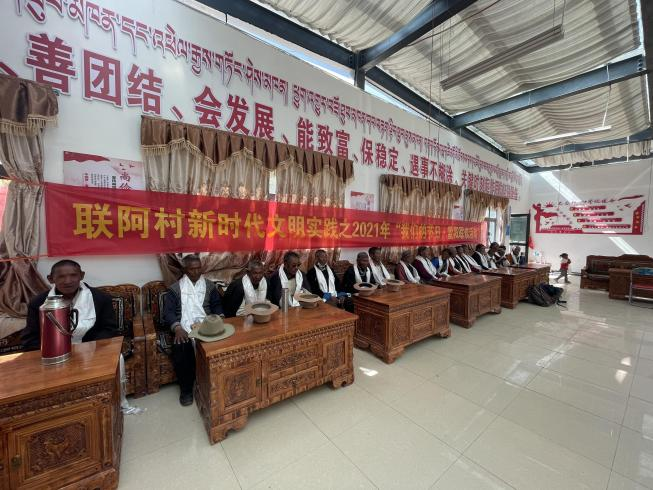 活动现场,老人们围桌而坐,畅谈他们生活中的点滴,他们在感受党和政府关爱的同时也尽情抒发表达着感恩之情。村书记、驻村工作队队长向在坐的每一位老人敬献哈达,并向老人们致以节日的祝福。驻村工作队利用此次活动向老人们宣讲中央对老人的各项福利政策,在场老人无一不鼓掌感恩。活动的最后,村书记向老人发放节日慰问金,每个人的脸上都洋溢着幸福的笑容,空气中弥漫着浓浓的邻里情,气氛温馨和谐。
