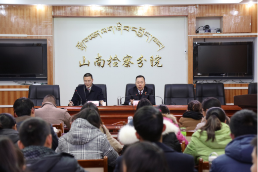 在讲座中,刘志刚检察长通过以案释法,深入浅出的讲解,有效地促进了新进人员知识向技能的转化。一是结合山南检察工作实际,讲解了如何运用法治思维和法制方法做好新形势下的检察工作;二是结合司法体制改革现状,深入分析了山南地、县两级检察院队伍建设情况,鼓励新入职干警努力提高业务能力和自身修养,在今后工作中敢作为,敢担当,早日成为一名优秀的检察人员;三是结合自身多年工作经验,详细介绍了检察院的各项职能,鼓励新进人员在为期一年的培训锻炼中多向援藏干部和工作经验丰富的同志学习,尽快适应检察工作。