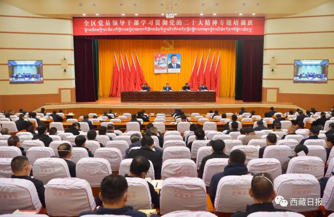 11月18日上午,为期5天的全区党员领导干部学习贯彻党的二十大精神专题培训班在自治区党委党校开班。自治区党委书记王君正作开班辅导报告。强调,各级党员领导干部要弘扬理论联系实际的学风,认真学习贯彻党的二十大精神,持续在学懂弄通做实上下功夫,按照自治区第十次党代会和区党委十届三次全会部署要求,聚焦“四件大事”、聚力“四个创建”,以钉钉子精神狠抓各项工作落实,努力推动西藏长治久安和高质量发展。