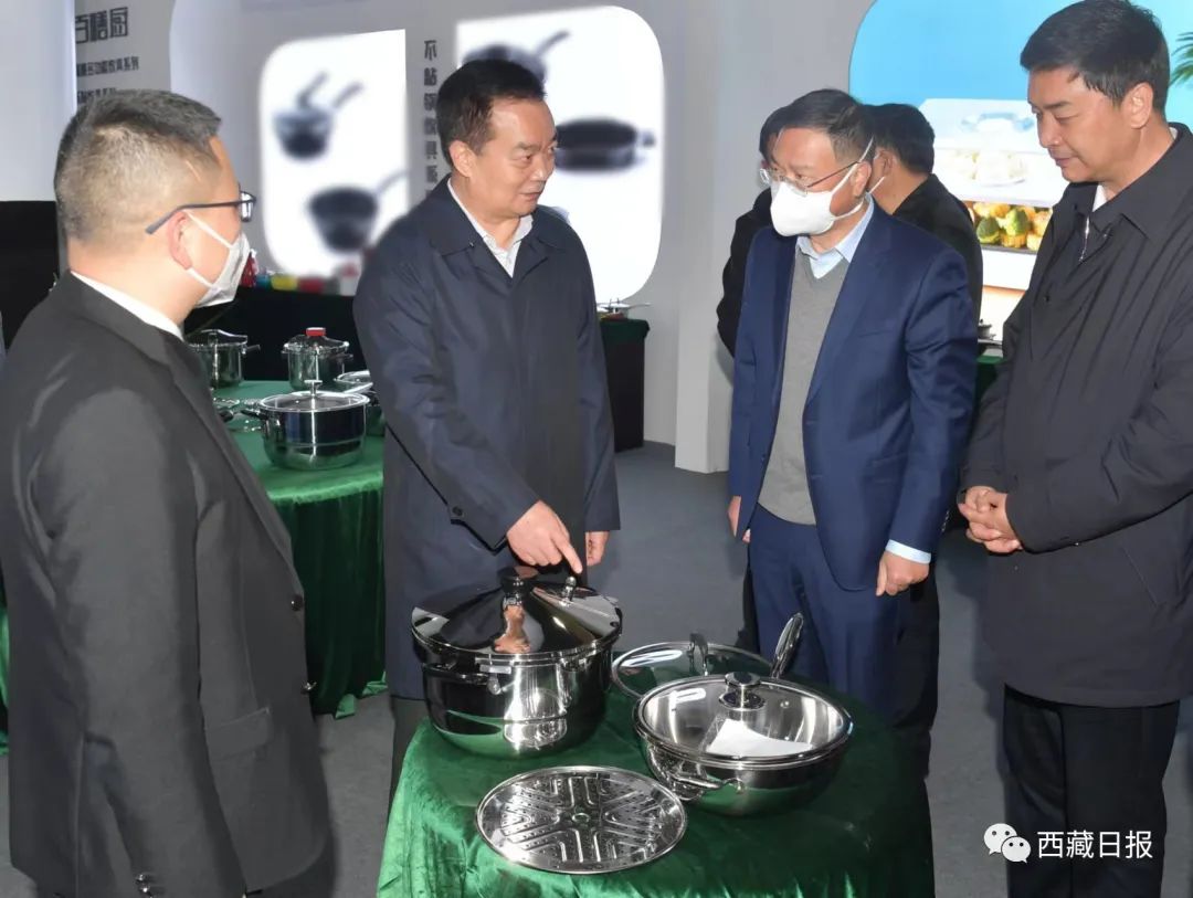 西藏海拔高、气压低,人民群众对适应高原地区的多功能烹饪炊具有着迫切需求。自治区党委、政府把群众生活中的“小事”当做民生工作“大事”来抓,积极推动高原新型炊具产品研发推广。“与传统高压锅相比有什么优点?出厂价格是多少?”在西藏尚厨炊具科技有限公司,王君正动手操作、仔细询问,认真了解高原炊具研发攻关、专利申请、产品生产、推广应用、品牌建设等情况,对产品研发生产工作给予充分肯定。王君正指出,高原新型炊具具有安全简便、功能多样、物美价廉、高原适用等诸多特点,归根结底是要好看好用,满足群众美好生活需要。要加大研发力度,把先进制造技术与高原群众需求有机结合起来,积极研发推广适应高原气候的新型产品,更好满足群众对美好生活的需要。要优化完善产品设计,用好用活西藏元素,把产品做精做细,让群众买得放心、用得称心。要坚持产业化、规模化、特色化、品牌化,把产业做大做强,助力西藏绿色产业发展。