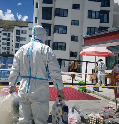 援藏干警陈杰为封控区居民运送生活物资