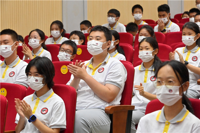“各位同学应该都是00后。大家一出生就面临无所不在的网络世界,是地地道道的‘数字原住民’。现实生活中,老师、家长经常教导我们重礼仪、知荣辱、守诚信、尚文明,那在网络空间呢?彼此不见,但彼此都在,一样需要具备良好的网络素养。”张军结合青少年的学习生活特点和具体案事例,从“认清网络世界,要从‘我’做起,培育良好网络素养”“保护网络权益,要依法上网,远离网络违法犯罪”“净化网络环境,要各方尽责,共护清朗网络空间”等三方面为师生们进行了深入浅出地讲解——