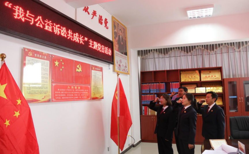 一是在党支部副书记的带领下全院在家干警再一次重温入党誓词,随后由院民行检察官结合我院近年来办理的实际案例,深入浅出地介绍了检察机关办理公益诉讼案件的重要性、法律依据、监督领域和工作流程等内容,进一步把握好国家、社会公共利益这个核心,全力做好公益诉讼案件办理工作。