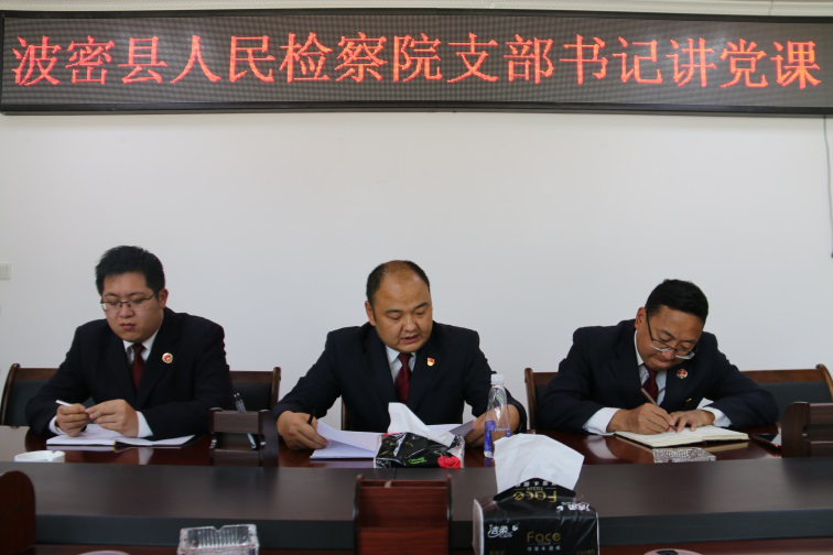 活动上,支部书记周荣波同志以“继承和发展党的优良传统,发挥三会一课在新时代的新作用”为主题为全院干警上了一堂生动深刻的党课。周荣波同志从“三会一课”制度的形成与发展,如何在新时代发挥好“三会一课”制度的新作用两个方面进行了精彩讲述。他指出,“三会一课”制度是我党的优良传统,也是党的建设不断取得胜利的重要法宝,在中国特色社会主义进入新时代的关键时期,必须必以往更加重视和坚持这一行之有效的制度,在巩固中加强,在改进重创新,不断在功能、内容、形式、流程等基本要素上进行丰富和拓展,切实增强“三会一课”的政治性、时代性。同时要发挥党员先锋模范作用和支部战斗堡垒作用,以党建促检察业务建设,明确工作思路,以工匠精神提高办案质量,努力提升人民群众满意度,为“五个波密”建设作出检察机关应有的贡献。