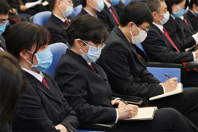 最高人民检察院全体检察人员在主会场参加会议。
