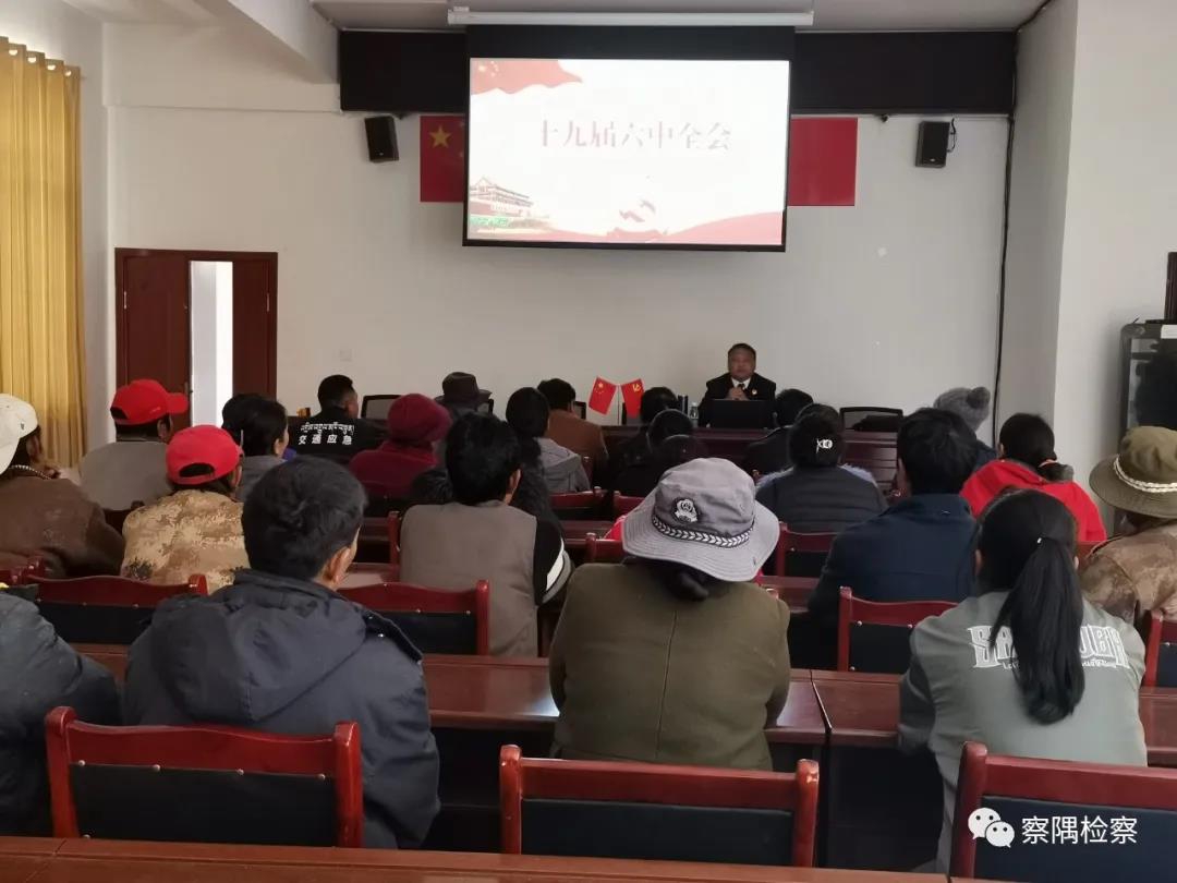 为进一步贯彻落实习近平新时代中国特色社会主义思想,践行为民初心,12月31日,察隅县人民检察院党组书记、检察长尼玛坚增深入上察隅镇荣玉村开展党的十九届六中全会和自治区第十次党代会精神集中宣讲暨送法活动,荣玉、毕达、西巴等村群众50余人参与。 首先,从党的初心使命、“两个确立”的重大历史论断、“十个坚持”、“一个号召”等九方面,深入全面宣讲了党的十九届六中全会重要意义与重要内容。围绕西藏取得当前成就的原因和未来发展方向,从干部群众切身利益出发,详细地讲解了自治区第十次党代会精神。通过宣讲,教育引导群众切实把思想和行动统一到会议精神上来,把智慧和力量凝聚到建设美丽幸福西藏、共圆伟大复兴梦想上来。 随后,充分发挥检察职能优势,结合群众关注关切,用通俗易懂的语言,向大家宣讲了森林资源保护、民法典、农民工权益保障、醉酒驾驶等法律法规,并发放宣传册300余份、接受群众咨询7人次。最后,对维稳值班、疫情防控等节前重点工作进行了再强调,确保不出事故,让群众过好安乐祥和的节日。 宣讲结束后,群众感慨,没有党我们过不上这么好的生活,我们始终会做到感党恩、听党话、跟党走。同时,通过今天的法律知识宣讲,我们对相关法律法规有了更加深刻的认识,我们会做一个懂法、守法、用法的好公民。