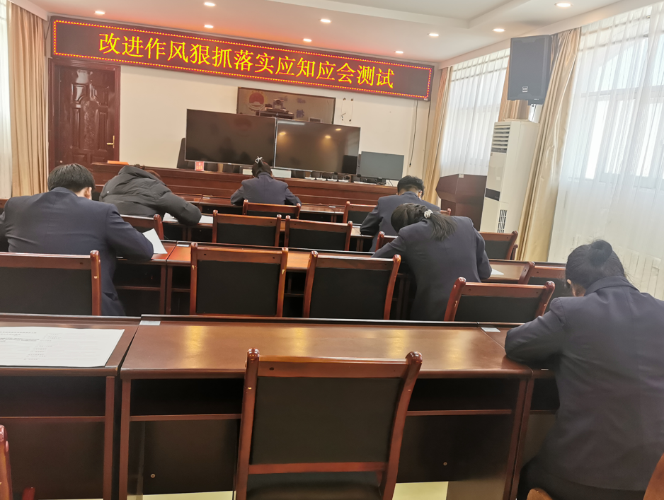 通过测试,充分检验了全体检察干警对改进作风狠抓落实应知应会的掌握情况及学习成果,达到了以考促学、以学促用、学用结合、知行合一的学习目的,展示了检察干警积极向上的学习态度。通过考试使全体干警对改进作风狠抓落实工作有了更加深刻的认识,为下一步工作打下了坚实的思想理论基础。
