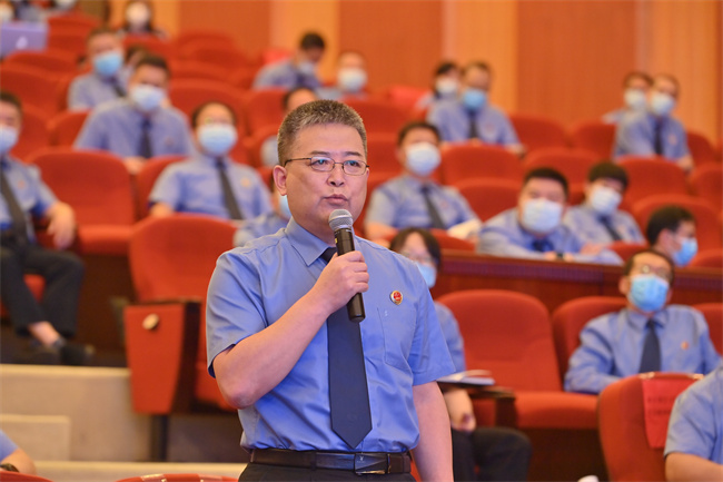 “‘质量建设年’绝不只是业务的质量建设。没有单纯的业务建设!贯彻落实习近平法治思想,就要更加自觉将政治融入业务,一体抓实、抓好。”9位学员代表发言后,张军结合大家谈到的问题进行“问诊式授课”,从为什么提出“质量建设年”、“质量建设年”要解决哪些问题、怎样抓好“质量建设年”三方面进行答疑解惑——