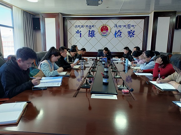 近期,当雄县人检察院组织召开专题会议传达学习全区政法队伍教育整顿后续工作动员部署会精神,对院机关政法队伍教育整顿后续工作进行安排部署。会议由党组书记、检察长米玛次仁主持。