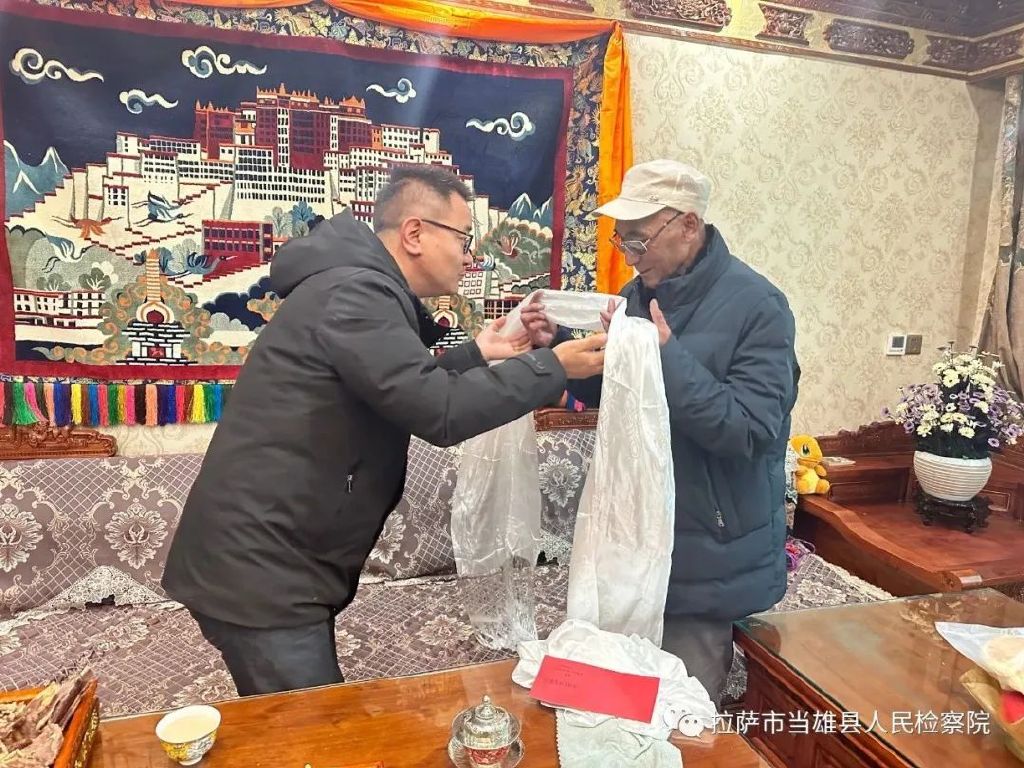 在2023年藏历新年来临之际,当雄县人民检察院开展节前走访慰问活动。2月18日,院党组书记、检察长米玛次仁带队看望慰问退休老干部,并代表院党组送上对退休干部的亲切关怀和美好祝福。