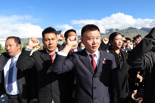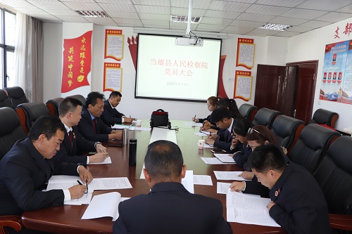 随后,我院党支部召开全体党员大会会议由当雄县人民检察院党党支部书记平措扎西同志主持会议。在家共11名干警参加了党员大会,院党组书记、检察长次仁多吉同志以一名普通党员身份参加会议。在党员大会上,首先传达学习了朱雅频检察长关于“如何实现检查党建工作与检察业务工作深度融合”调研时讲话精神,通过学习,全体党员认为,朱雅频检察长的讲话高瞻远瞩、内涵深刻、要求明确,具有很强的针对性、指导性、操作性,为推进检察党建工作与检察业务工作深度融合,推动检察工作转型创新高质量发展指明了方向,提供了根本遵循。要求全院党员干部要深入学习贯彻朱雅频检察长讲话精神,深刻领会其精神实质与核心内涵,切实把思想和行动统一到讲话精神上来,牢记检察人员初心使命,积极履职尽责,主动担当作为,全力以赴抓紧抓好抓实2020年各项检察工作的有力落实,积极展现我院干警的政治自觉、法治自觉、检察自觉。其次,党员大会研究讨论接收一名预备党员。由入党申请人次仁卓玛同志宣读入党申请书并汇报考察期内个人思想、生活、学习、工作等方面的情况,真情地表达对党的向往和对党忠诚、坚定不移跟党走、全心全意为人民服务的决心,入党介绍人介绍了培养考察意见并表明态度,支委会报告了对该同志的审查情况,全体与会党员发表了意见并进行了无记名投票表决,经过大会充分讨论,会议决定吸收次仁卓玛同志为中共预备党员,并举行了入党宣誓仪式。