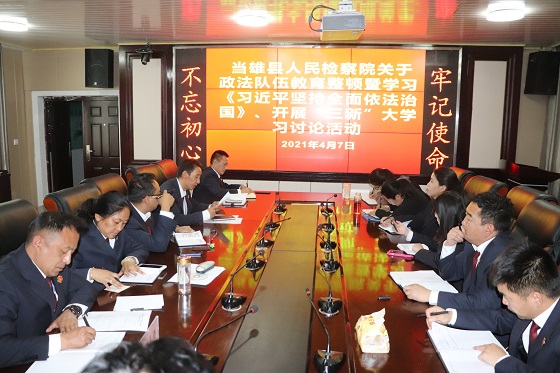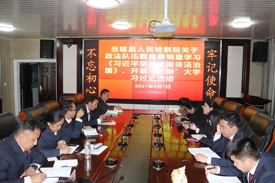 为强化政治建检,深入开展检察队伍教育整顿和“把握新发展阶段、贯彻新发展理念、构建新发展格局,推动长治久安和高质量发展”大学习大讨论活动,3月31日,当雄县人民检察院检察队伍教育整顿领导小组办公室组织全体在家党员干警开展“三新”专题教育学习研讨会,此次会议由院党组书记、检察长次仁多吉同志出席并讲话,党组副书记、副检察长平措扎西主持,