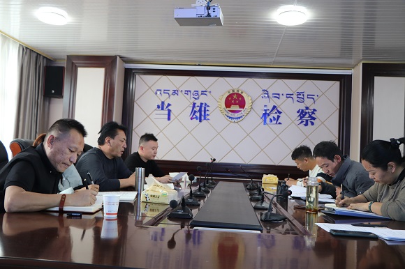政法队伍教育整顿进入查纠整改环节以来,当雄县人民检察院紧紧围绕目标任务,坚持自查自纠、组织查处、专项整治同向发力,以“刀刃向内”的勇气、扎实有力推动政法队伍教育整顿走深走实。5月16日下午,院党组组织召开第五次党组理论中心组学习会议,传达学习习近平法治思想和中央全面依法治国工作会议精神,把握核心要义、明确工作要求,以高度的政治自觉、法治自觉、检察自觉,依法履行法律监督职责,在全面依法治国进程中切实担负起党和人民、宪法和法律赋予的检察使命。院党组成员、副检察长姚东平同志主持会议。