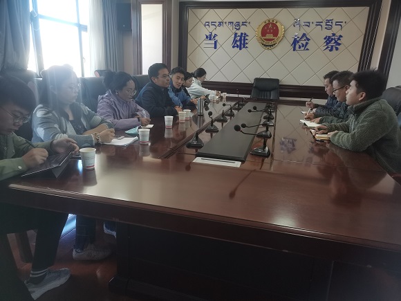 座谈会上,陈烨副教授介绍了调研目的和意义并当雄县人民检察院为这次调研作出的准备表示了感谢,我院代表同志介绍了当雄县人民检察院基本情况,简要汇报了近三年案件办理情况。与会同志,围绕案件类型分析监检衔接机制、依职权主动监督、公益诉讼检察、增强检察建议刚性的实践探索等内容,通过互动回答的方式,进行了交流探讨。