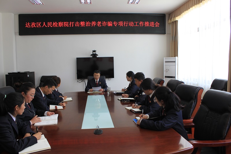 会上,我院副检察长何琪传达了打击整治养老诈骗专项行动相关会议精神及工作实施方案,并强调:一是工作要落实到位。全院干警要结合职能工作迅速参与到行动工作方案中,明确专项行动要求扎实推进,准确打击涉养老诈骗各类犯罪,切实守好老年人的“养老钱”“救命钱”。二是要加强宣传。充分用好检察宣传平台,丰富宣传资料,用心用情用力做好宣传发动,扩大社会知晓面。三是要强化责任,全院干警要协同相关部门密切配合主动作为,在建立机制,履行职责上迅速推进,确保专项行动取得良好的效果。