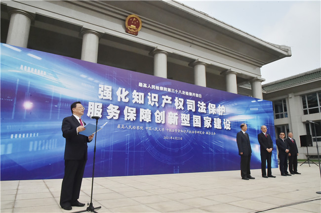 4月25日,最高人民检察院与中国人民大学、中国法学会知识产权法学研究会联合举办“强化知识产权司法保护,服务保障创新型国家建设”检察开放日活动。最高检党组书记、检察长张军出席欢迎仪式并致辞。