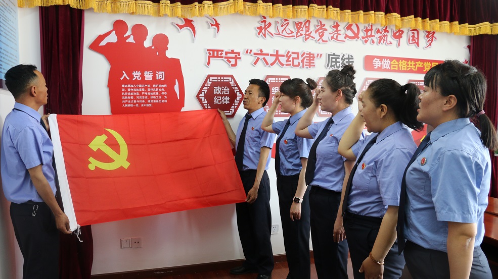 上午,全体党员面对鲜红的党旗和庄严的检徽,郑重宣誓,重温入党誓词,表达了作为一名检察干警,忠于国家、忠于人民、忠于宪法和法律,誓死履行法律监督职责,恪守检察职业道德,维护公平正义、维护法治统一的坚强决心。