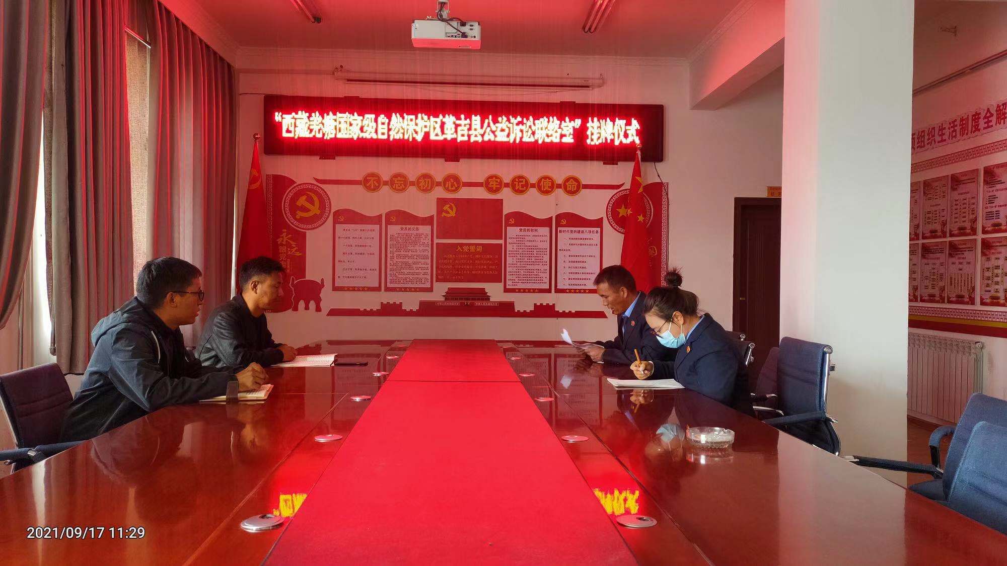 为进一步履行好、发挥好检察机关公益诉讼检察监督职责,切实维护社会公共利益。根据西藏自治区人民检察院、西藏自治区林业和草原局联合印发的《全区国家级自然保护区公益诉讼检察联络室设立方案》通知要求,院党组高度重视,积极争取县委、县府支持,主动与相关行政职能部门沟通、协调,革吉县人民检察院驻革吉县林业和草原局“西藏国家级自然保护区革吉县公益诉讼检察联络室”于2021年9月17日正式挂牌设立。