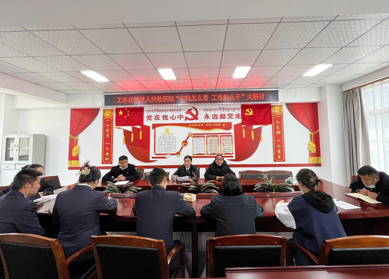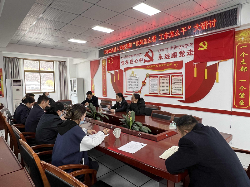 为深入贯彻落实区党委、市委、县委关于进一步改进作风狠抓落实相关会议精神,3月24日下午,工布江达县人民检察院开展“作风怎么看 工作怎么干”大研讨活动。会议由院党组书记、检察长赵芳侠主持,全体在院干警参加研讨。