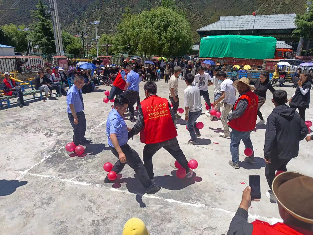 随后两个党支部一同组织党员群众开展趣味文体活动,活动以民族团结为主题,以团队协作为目标,让领导干部树模范,党员群众齐参与;活动过程中,各组参赛选手都以饱满的精神融入角色,分工明确、互相配合,以优异表现取得了称心的成绩。