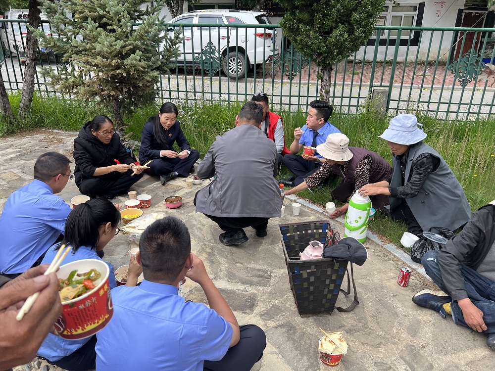 活动结束后,所有党员都将各自准备好的饭菜端了出来,大家席地而坐,在享受美食的同时,老党员们纷纷给党员群众讲述西藏从黑暗走向光明、从落后走向进步、从贫困走向富有的长远历史。