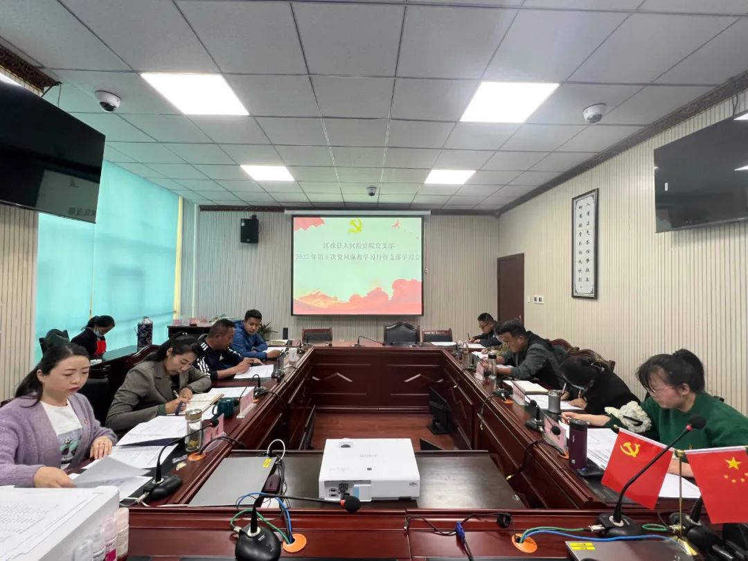会后一并召开了党支部2022年第6次党风廉政学习月暨支部学习会议。会议原文传达了《王君正书记对西藏精神文明建设的批示》《庄严常务副书记在自治区文明委2022年全体会议上的讲话》《严金海主席讲话精神》《中共中央政法委员会关于学习宣传滕启刚同志先进事迹的通知》《中共江孜县纪委关于一起违反会风会纪问题的通报》《中共江孜县纪委关于两起无证醉驾违纪违法问题典型案例通报》《关于一起违反中央八项规定精神典型问题的通报》。