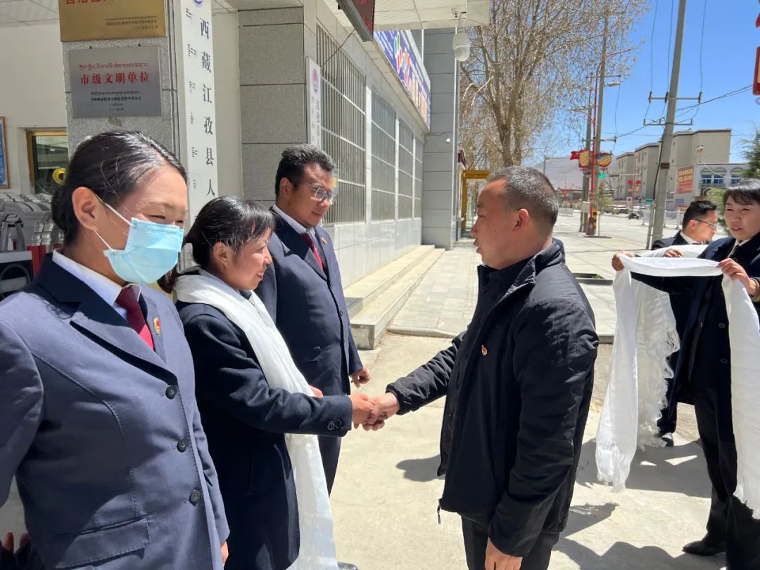 会后,举行了欢送仪式,班子成员为驻村队员敬献哈达。