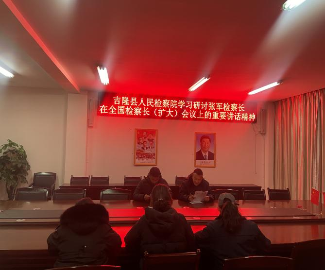 1月17日,吉隆县人民检察院召开专题会议,传达学习张军检察长在全国检察长(扩大)会议上的重要讲话精神,结合吉隆检察工作实际,研究贯彻落实意见。会议由党组成员格桑顿珠主持,在家党组成员及全体干警参加会议。