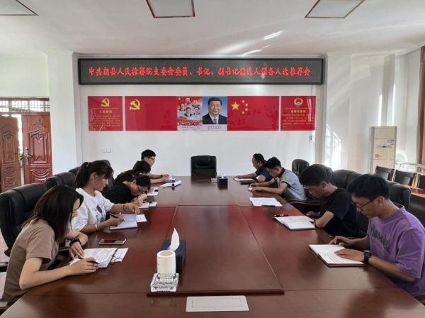 <2022年度朗县县直机关各党支部换届选举工作方案>的通知》文件精神,7月14日,朗县人民检察院党支部在院四楼会议室召开了党员大会,对新一届支部委员候选人推荐做了具体部署。会议由党支部组织委员郑波同志组织,全体在家党员参加会议,入党积极分子和群众旁听了会议。