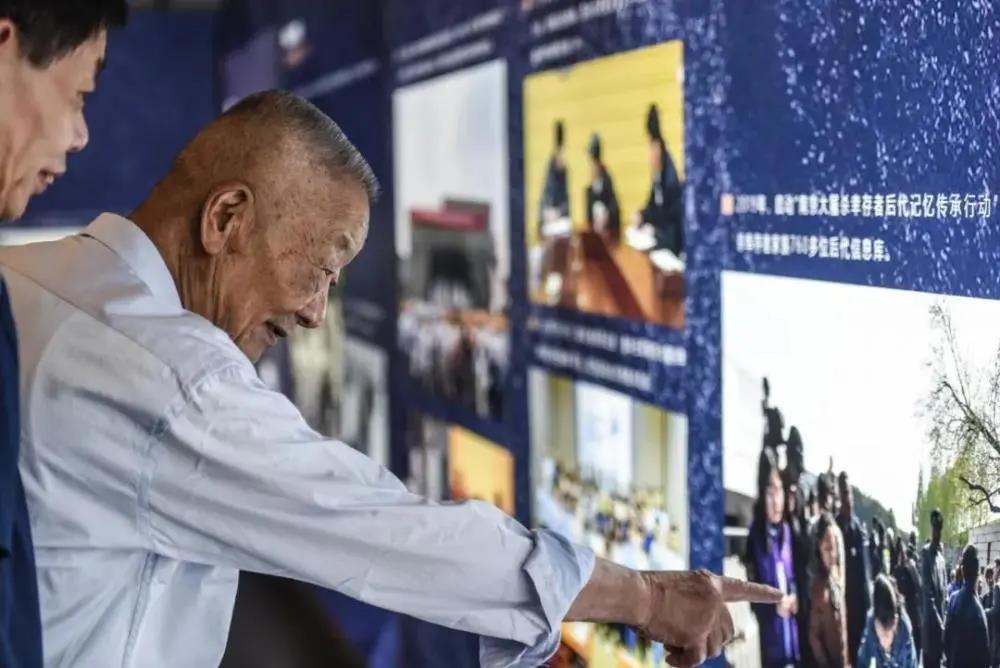 △2020年8月,南京大屠杀幸存者葛道荣参观侵华日军南京大屠杀遇难同胞纪念馆35周年回顾展。