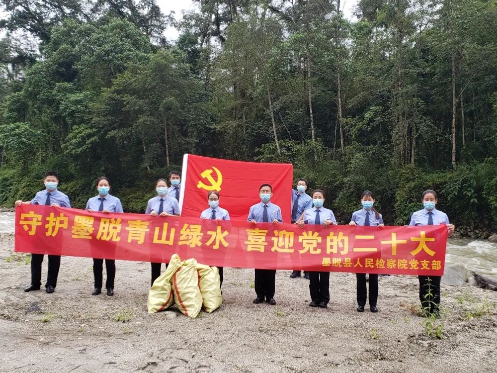 为推动党建工作与检察业务工作相互促进、融合发展,在奋力推进“四个创建”“四个走在前列”,打造喜马拉雅南麓最靓丽边境县上体现检察担当。墨脱县人民检察院组织党员干警深入西工河段开展主题党日+巡河护河活动,守护墨脱绿水青山,喜迎党的二十大胜利召开。