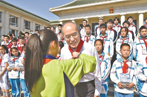 “近60年前,我和你们一样,也是一个系着红领巾,天天向上的热血少年呢!”身兼北京二中法治副校长的张军曾多次走上讲台,为师生们讲授生动的“开学第一课”。作为小朋友们的“老朋友”,再次系上红领巾的张军在开放日欢迎仪式上高兴地回忆起自己的“少年时光”,祝大朋友、小朋友们“六一”节日快乐。