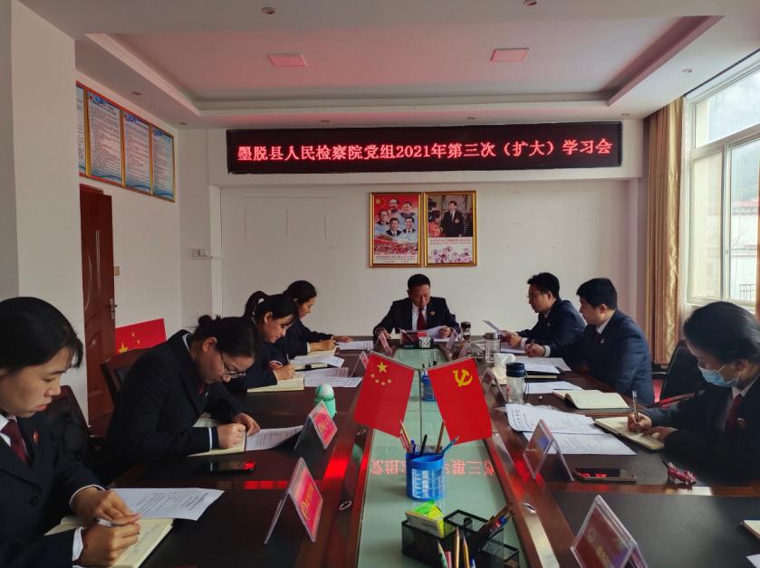 3月15日,墨脱县人民检察院党组召开2021年度第三次理论中心组学习暨队伍教育整顿专题学习。党组书记、代理检察长秦孟军参会并主持会议。不移走中国特色社会主义法治道路 为全面建设社会主义现代化国家提供有力法治保障。