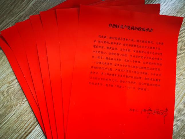 曲桑顿珠同志带领全体干警公开政治承诺,全体干警坚定承诺要坚决维护习近平总书记党中央核心、全党的核心地位,坚决维护党中央权威和集中统一领导,强化政治担当、弘扬斗争精神,自觉维护祖国统一,严守共产党员不得信仰宗教、不参加宗教活动的政治纪律,并在承诺书上签下自己的名字。