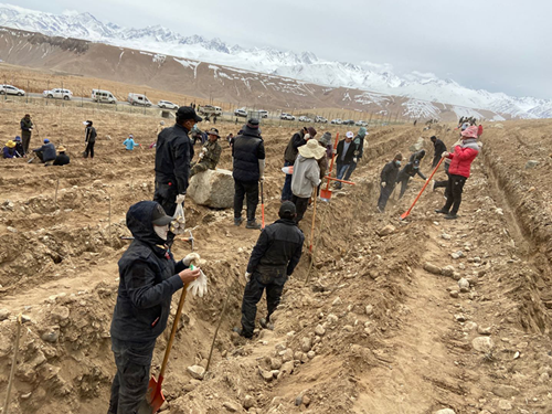 活动现场,大家热情高涨、干劲十足,挥锄扬锹、扶苗填坑、踩土压实,每道工序都一丝不苟、认真细致,确保栽一棵活一棵,植一片绿一方。经过为期两天的辛勤劳动,一棵棵排列整齐、笔直挺拔的苗木为普兰的春季带来了葱茏生机,大家忙碌的身影与刚种下的树苗形成了美丽的风景。最后我院以142棵的数量超额完成植树任务。